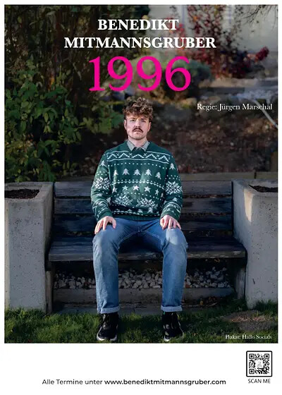 Eine Hommage an das Aufwachsen im Nirgendwo. Eine Liebeserklärung an die vergessenen Kaffs. Eine Reise in die eigene Vergangenheit. Ein skuriler Blick auf unsere Gesellschaft und auf eine aus den Fugen geratene Welt. Benedikt Mitmannsgrubers drittes Programm „1996“ ist seinen zwei Eltern und vier Großeltern gewidmet, die ihn trotz schwierigem Aufwachsen am Ende der Welt mit kaum Perspektiven zu dem Benedikt Mitmannsgruber geformt haben, der er heute ist!