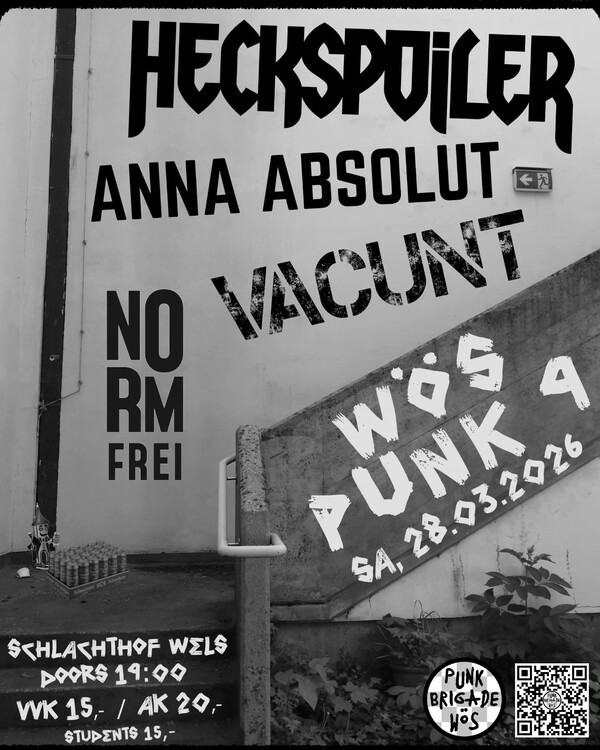 Bock auf Stress? Bock auf Party? Bock auf Punk? Wir haben gleich 4 Bands eingeladen, bei denen die Boxen glühen und Biere verdampfen werden. Mit dabei sind diesmal HECKSPOILER, Anna Absolut, Vacunt und Normfrei 🤘