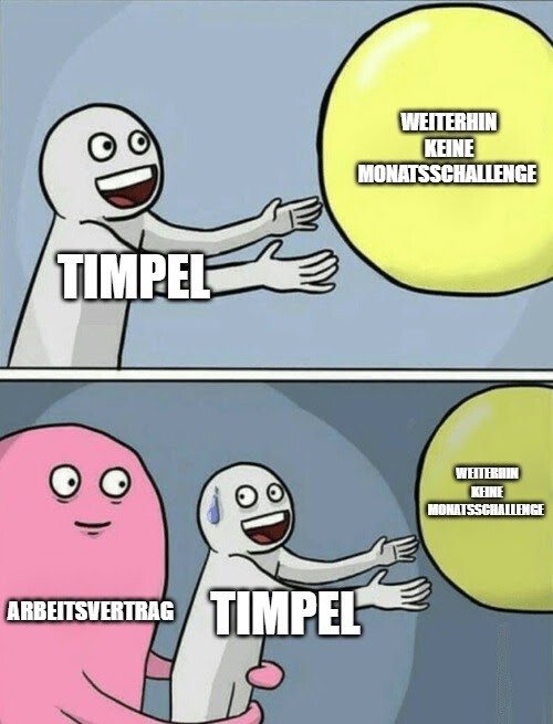 Am Dienstag, 03.02. um kurz nach 8 Uhr hat es live während der TimpelTime an die Studiotür geklopft und der Timpel wurde zum Firmenanwalt gebeten. In seinem Dienstvertrag wurde ein Passus gefunden, laut dem der Timpel eine Ausgleichschallenge einlösen muss, sollte er ein gesamtes Sendungsjahr kein einziges Monat bei Timpel reim die Wörter rein verlieren! Der Timpel war natürlich fassungslos, Sarah und Mike unfassbar euphorisch!