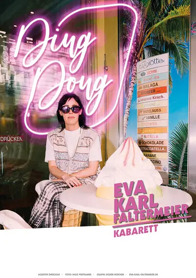 Eva Karl Faltermeier ist bekannt für ihren scharfen Witz und ihre unnachahmliche Art mit der sie das Publikum in Bayern und ganz Deutschland, Österreich, der Schweiz und Liechtenstein begeistert. Auch in ihrem dritten Bühnenprogramm „Ding Dong“ bleibt sie ihrem Stil treu, wenn sie mit ihren ZuschauerInnen ihre gesellschaftspolitischen Beobachtungen teilt. Den Nährboden dafür liefert häufig ihre Herkunft, die Streiche, die ihr das Leben spielt – sie eignen sich ideal, um vom Kleinen auf’s Große zu schließen.